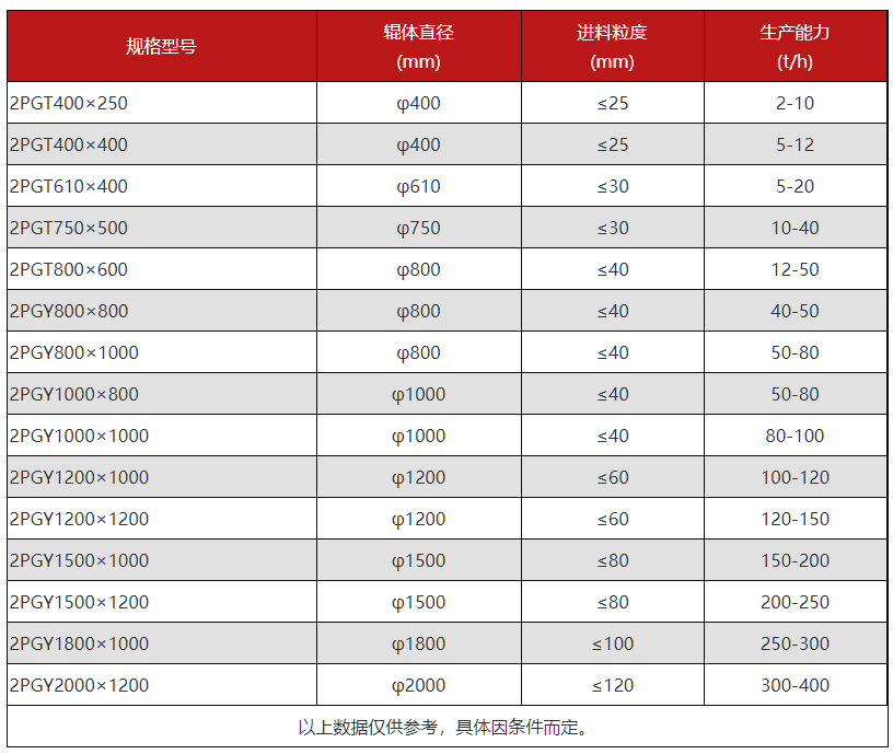 時產200噸雙輥破碎機型號參數